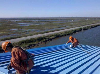 在施工前仔細檢查彩鋼屋面,確保金屬屋面牢固、清潔、無銹蝕、無異物。不符合上述條件的,按下列規(guī)定處理: